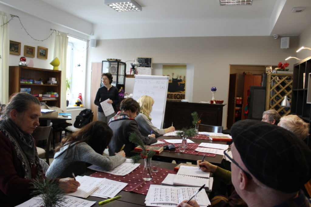 W weekend 11-12 stycznia nasz Instytut tętnił życiem. W niedzielę w pomieszczeniu Pracowni Społecznej „Plantacja” odbyły się kolejne zajęcia z języka hebrajskiego prowadzone przez rabinkę Małgorzatę Kordowicz. Natomiast w sobotę przyszli przewodnicy świętokrzyscy poznawali historię Żydów z naszego regionu podczas zajęć z dr. Markiem Maciągowskim, dyrektorem Ośrodka Myśli Patriotycznej i Obywatelskiej w Kielcach. Uczestnicy kursu przewodnickiego poznali również działalność naszego Stowarzyszenia i zwiedzili wystawy.
