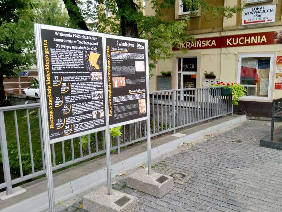 Stowarzyszenie zadbało również, by pamięć o tragicznych sierpniowych dniach z 1942 była zauważalna w przestrzeni miasta. Wystawę, która składa się z archiwalnych zdjęć, kalendarium, mapy i świadectw, ustawiono w dwóch ważnych miejscach: przy Ławeczce Karskiego stojącej przy ulicy Sienkiewicza oraz przy pomniku Menora (IX Wieków Kielc).