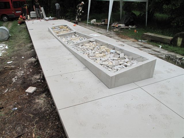 Pomimo niesprzyjającej pogody prace przy budowie grobowca posuwają szybko i z zgodnie z planem. Ekipa kamieniarzy kończy właśnie układanie płyty nagrobnej. Nie było to łatwe zadanie – należało bowiem precyzyjnie połączyć ze sobą kilkadziesiąt tworzących ją kamiennych bloków, w tym między innymi tych z wyrytymi nazwiskami ofiar. Na piątek (4 czerwca) planowany jest montaż 6-metrowej płyty z czarnego granitu – umieszczona zostanie ona powyżej płyty głównej. Uporządkowano także otoczenia pomnika. Miejsce to wybrukowane będzie granitową kostką.
