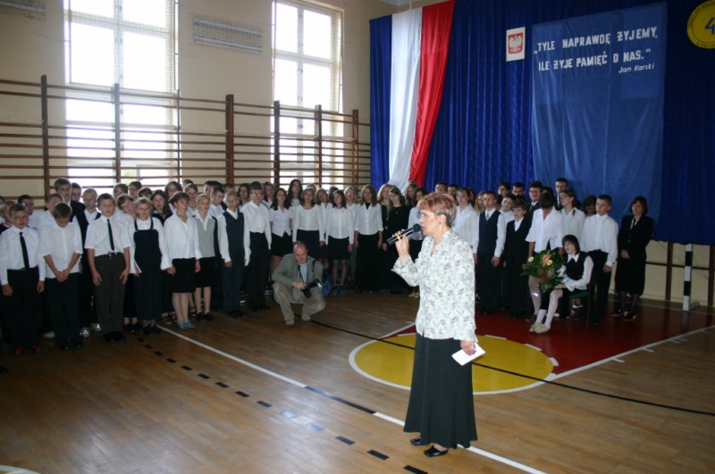 Na uroczystość wręczenia nagród zaprosiliśmy znamienitych gości: profesora Żbikowskiego – autora najnowszej biografii o Janie Karskim i prezesa Stowarzyszenia im. Jana Karskiego w Kielcach – Bogdana Białka. Wiele refleksji dostarczył występ uczniów naszego gimnazjum, a także film dokumentalny pt” Sprawiedliwi wśród Narodów Świata”, który wspólnie obejrzeliśmy.