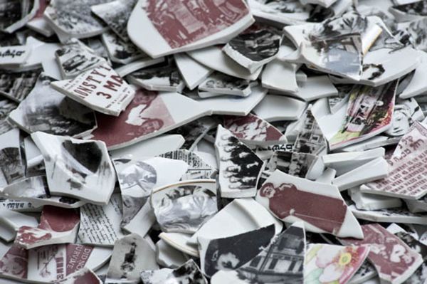 – Kronika Kielecka to duży, czarny stół z drewna, który zamiast blatu ma wgłębienie na 15 centymetrów. Jest wypełniony ułamkami porcelanowych naczyń z nadrukowanymi fotografiami Kielc, mojej rodziny, Kielczan chrześcijan i Żydów. Na tych zdjęciach przeszłość miesza się z teraźniejszością, rzeczy smutne, złe z dobrymi. Ludzie mogą usiąść przy tym stole i grzebać w potłuczonych talerzach, spodkach. Nie ma chronologii, żadnych dat.