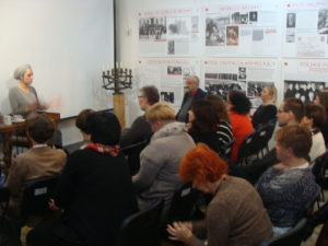 Za nami listopadowe spotkanie studium „ABC judaizmu”. Rebecyn Miriam Szychowska opowiadała o kobietach w judaizmie, ich roli w małżeństwie, w wychowaniu dzieci oraz w życiu społeczności. Miriam Szychowska, żona rabina Łodzi Dawida Szychowskiego, pochodzi z niereligijnej rodziny żydowskiej, w wieku dojrzałym wróciła do judaizmu. Podczas spotkania porównywała życie codzienne Żydów ortodoksyjnych oraz rodzin niereligijnych, pokazywała również fotografie z ważnych uroczystości, takich jak obrzezanie, bar micwa, ślub. Wyjaśniała, dlaczego niektóre ortodoksyjne Żydówki noszą peruki, a także dlaczego ważny jest odpowiedni kobiecy strój. Miriam Szychowska opowiadała z perspektywy żony rabina i matki czworga dzieci, a także ortodoksyjnej Żydówki mieszkającej w Polsce. Wzbudziło to duże zainteresowanie słuchaczy.
