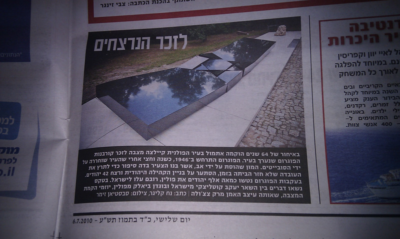 Poniższy tekst ukazał się 6 lipca 2010 roku w Yedioth Ahronoth – największej gazecie izraelskiej. Dotyczy uroczyści, które odbyły się dzień wcześniej na kieleckim kirkucie. Notka została przetłumaczona z języka hebrajskiego na angielski a następnie na polski.
