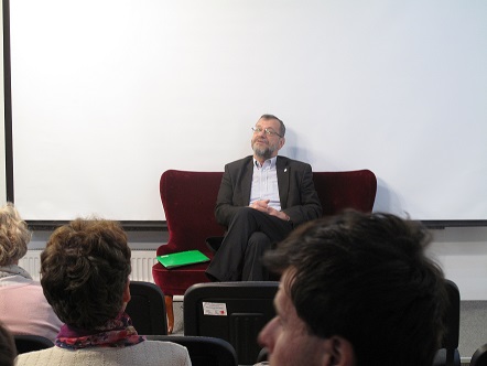Po projekcji odbyła się rozmowa z dr Józefem Płoskonką, fizykiem jądrowym.