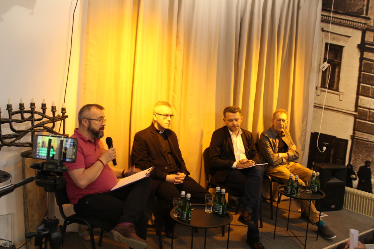 Na dzień przed rocznicą zorganizowaliśmy „Nocne kielczan rozmowy”: spotkanie, którego wiodącym tematem była pamięć o pogromie i jej forma. Wprowadzeniem był wykład prof. Stanisława Obirka – teologa, socjologa i historyka idei, dotyczący tego, jak dziś pamięć kształtuje społeczeństwo, ale też jak społeczeństwa kształtują swoją pamięć, używając jej często do uzasadniania swoich działań. Yaacov Kotlicki, przewodniczący Stowarzyszenia Żydów Kieleckich w Izraelu, zaprezentował, jak pamięć o pogromie żyje wciąż w Izraelu. Spotkanie zakończyła dyskusja panelowa z udziałem Bogdana Białka, dr. hab. Roberta Kotowskiego – dyrektora Muzeum Narodowego w Kielcach, ks. dr. Rafała Dudały – duszpasterza akademickiego i pracownika naukowego Instytutu Polityki Międzynarodowej i Bezpieczeństwa UJK oraz Marka Cecuły – artysty ceramika, projektanta pomnika „Menora” oraz nowego nagrobka ofiar pogromu. Dyskusja dotyczyła tego, czy Kielcom potrzebna jest pamięć o pogromie i jakie formy jej wyrażania są najbardziej adekwatne.