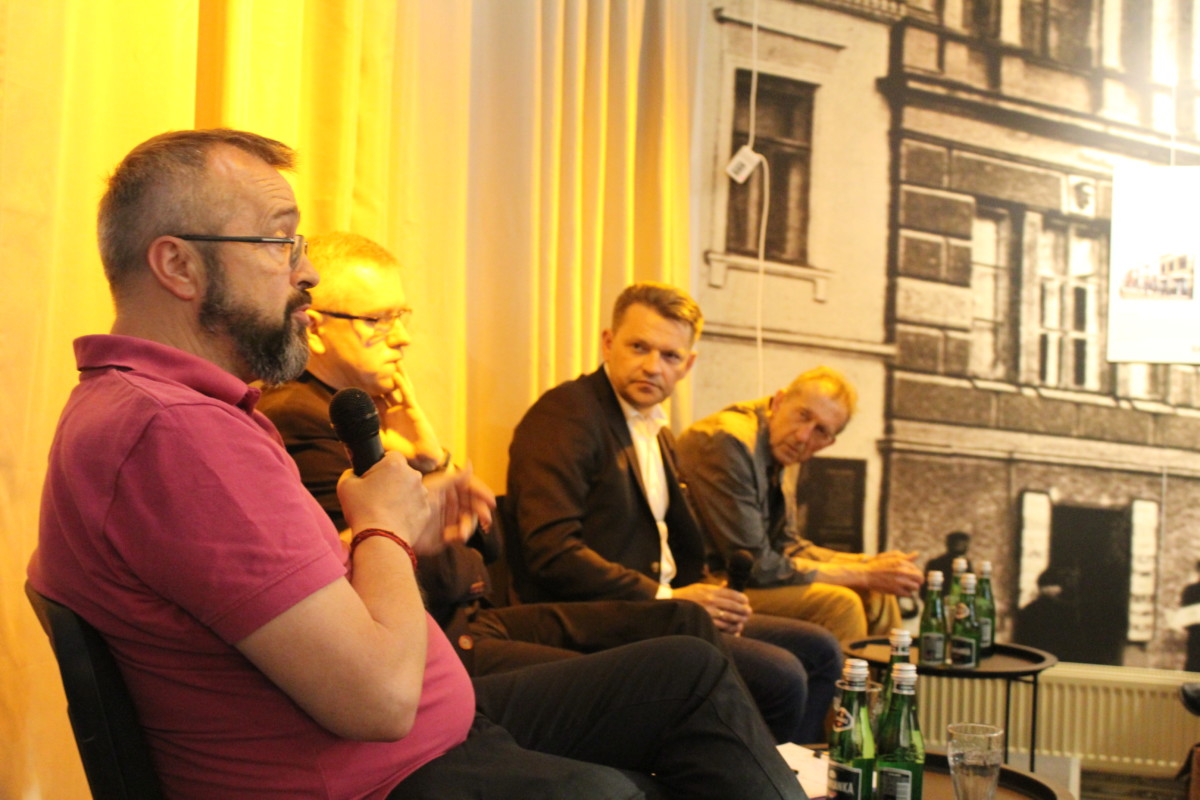 Tegoroczne obchody rocznicy pogromu poprzedziły dwa spotkania związane z nowymi publikacjami dotyczącymi Zagłady. 18 czerwca miało miejsce spotkanie z Weroniką Kostyrką dotyczące jej książki „Tancerka i zagłada. Historia Poli Nireńskiej”, w której autorka na nowo odkryła osobę żony Jana Karskiego. 26 czerwca rozmawialiśmy z historykiem Marcinem Zarembą i Krystyną Bratkowską, wydawcą, o książce Mordechaja Canina „Przez ruiny i zgliszcza”. Reportaże z podróży odbywanych w powojennej Polsce szlakiem dawnego życia żydowskiego niedawno ukazały się po raz pierwszy po polsku. Wśród opisywanych miejscowości są również Kielce. Canin odwiedził je zaraz po pogromie, w którym widzi dokończenie rozpoczętego przez Hitlerowców procesu całkowitego zniszczenia życia żydowskiego.
