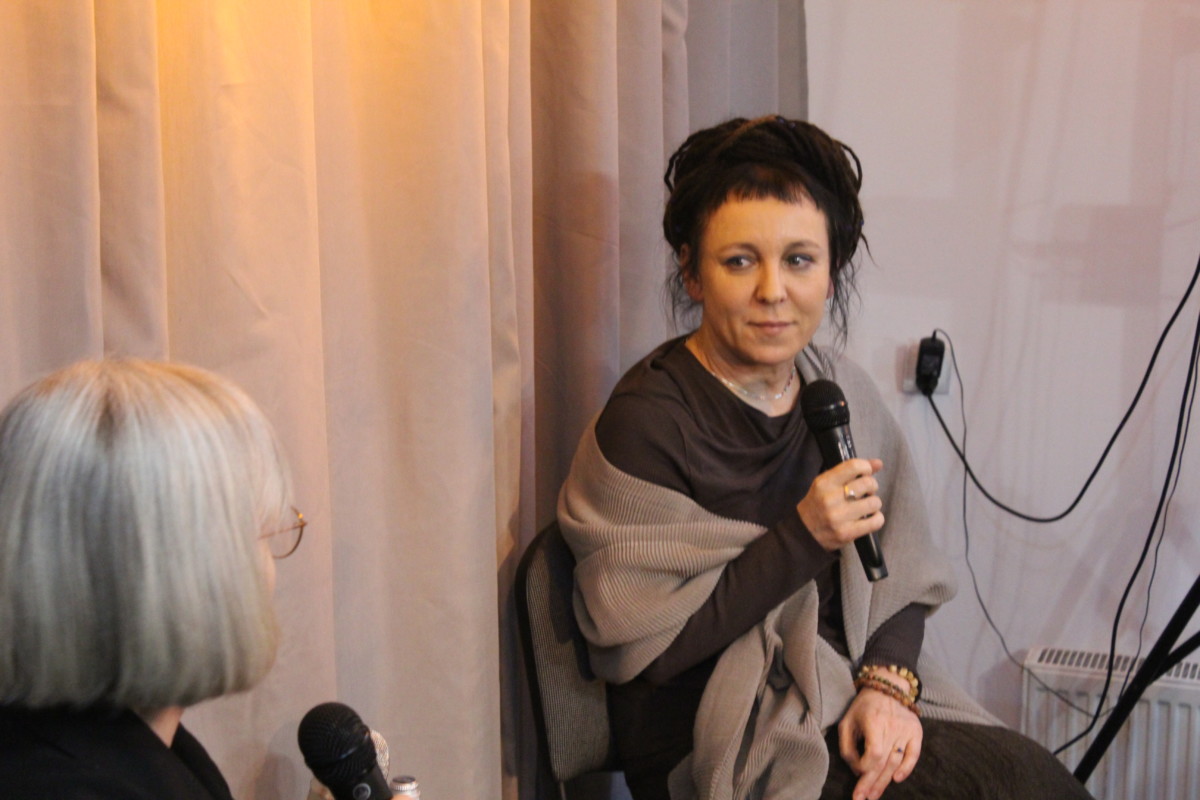 Naszym kolejnym gościem była Olga Tokarczuk, pisarka, która w 2018 roku została laureatką prestiżowej Międzynarodowej Nagrody Bookera za powieść „Bieguni”. Prowadząca spotkanie Dorota Krzemionka próbowała skłonić autorkę do diagnozy współczesnego świata. Pisarka podjęła się tego zadania, jednak unikała prostych odpowiedzi i mówiła o swojej pracy i znaczeniu literatury w postrzeganiu i poruszania się w nieoczywistym, zmieniającym się świecie.