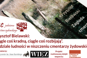 „Ciągle coś kradną, ciągle coś rozbijają”. Wykład Krzysztofa Bielawskiego o udziale ludności w niszczeniu cmentarzy żydowskichWięcej "„Ciągle coś kradną, ciągle coś rozbijają”. Wykład Krzysztofa Bielawskiego o udziale ludności w niszczeniu cmentarzy żydowskich"