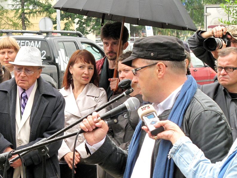 – Zawsze nasz marsz ma charakter bardzo spontaniczny, bardzo nieformalny i wynika przede wszystkim z potrzeby serca, dlatego nie mamy w zwyczaju – jak to się zdarza w oficjalnych ceremoniach – witać gości i wymieniać ich dostojnych funkcji. Ale dwie osoby, które są tu dzisiaj z nami chcę wymienić. To pan Filip Bialowitz, ostatni z dwóch żyjących uczestników buntu w obozie w Sobiborze i pani Miriam Guterman, kielczanka ocalała z pogromu.
