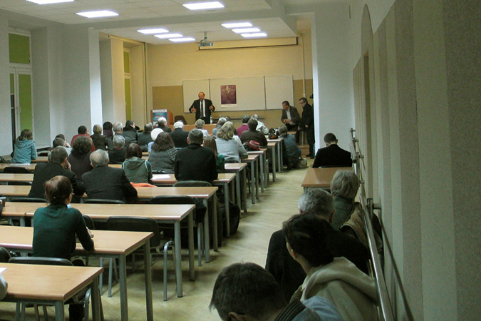 – My czekamy na Mesjasza parę tysięcy lat, wy dwa tysiące lat, to co to jest wobec tego ta mała godzina – żartobliwie rozpoczął spotkanie z kielczanami Naczelny Rabin Polski Michael Schudrich. Tłumaczył w ten sposób swoje spóźnienie. Ponad sto przybyłych na Uniwersytet Jana Kochanowskiego mieszkańców Kielc cierpliwie oczekiwało przyjazdu gościa z Warszawy co dowodzi szczerego ich zainteresowania tym wydarzeniem.