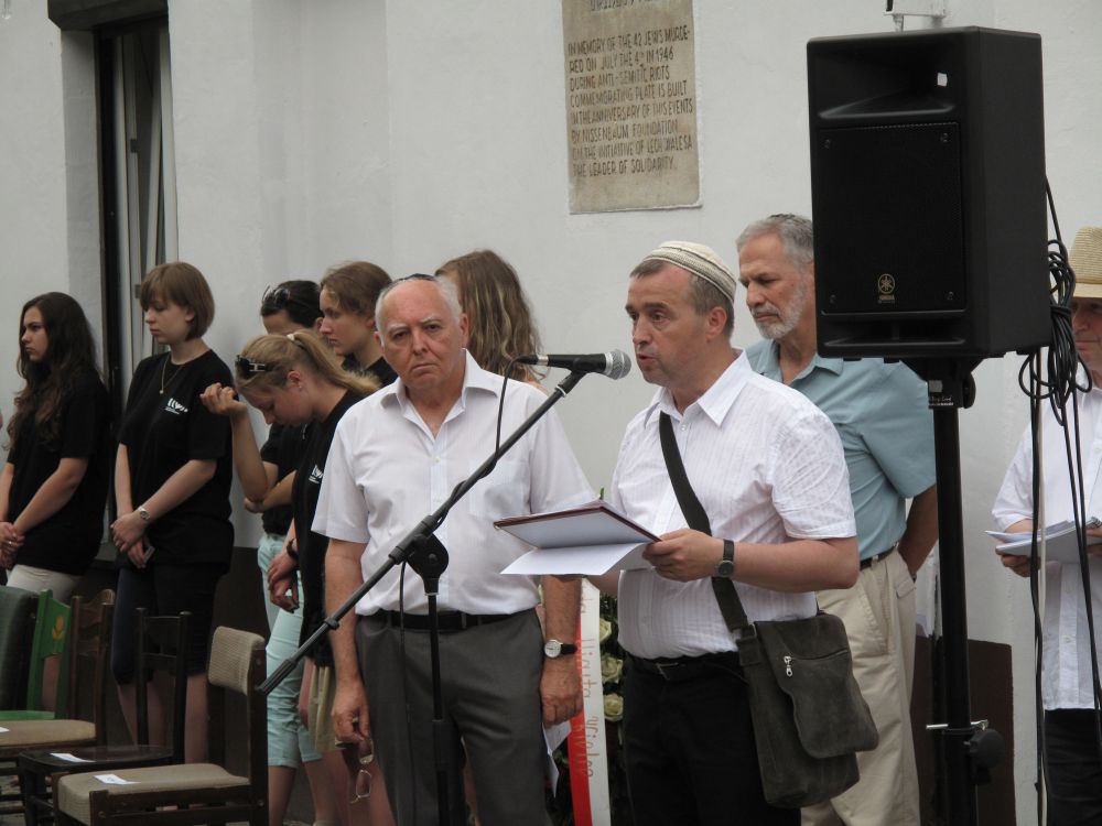 – Nie chcemy przysłaniać zbrodni pogromu wspominając Sprawiedliwych. Nie możemy jednak wspominając pogrom nie pamiętać o Sprawiedliwych i nie możemy pamiętając o Sprawiedliwych nie pamiętać o pogromie – tłumaczył zgromadzonym Bogdan Białek. Krótką modlitwę odmówił o. Wiesław Dawidowski, współprzewodniczący Polskiej Rady Chrześcijan i Żydów, po czym chór Politechniki Świętokrzyskiej odśpiewał hymy Polski i Izraela. Następnie prezes Stowarzyszenia wręczył medale Vir Bonus pastorowi Januszowi Daszucie oraz Włodzimierzowi Kacowi.