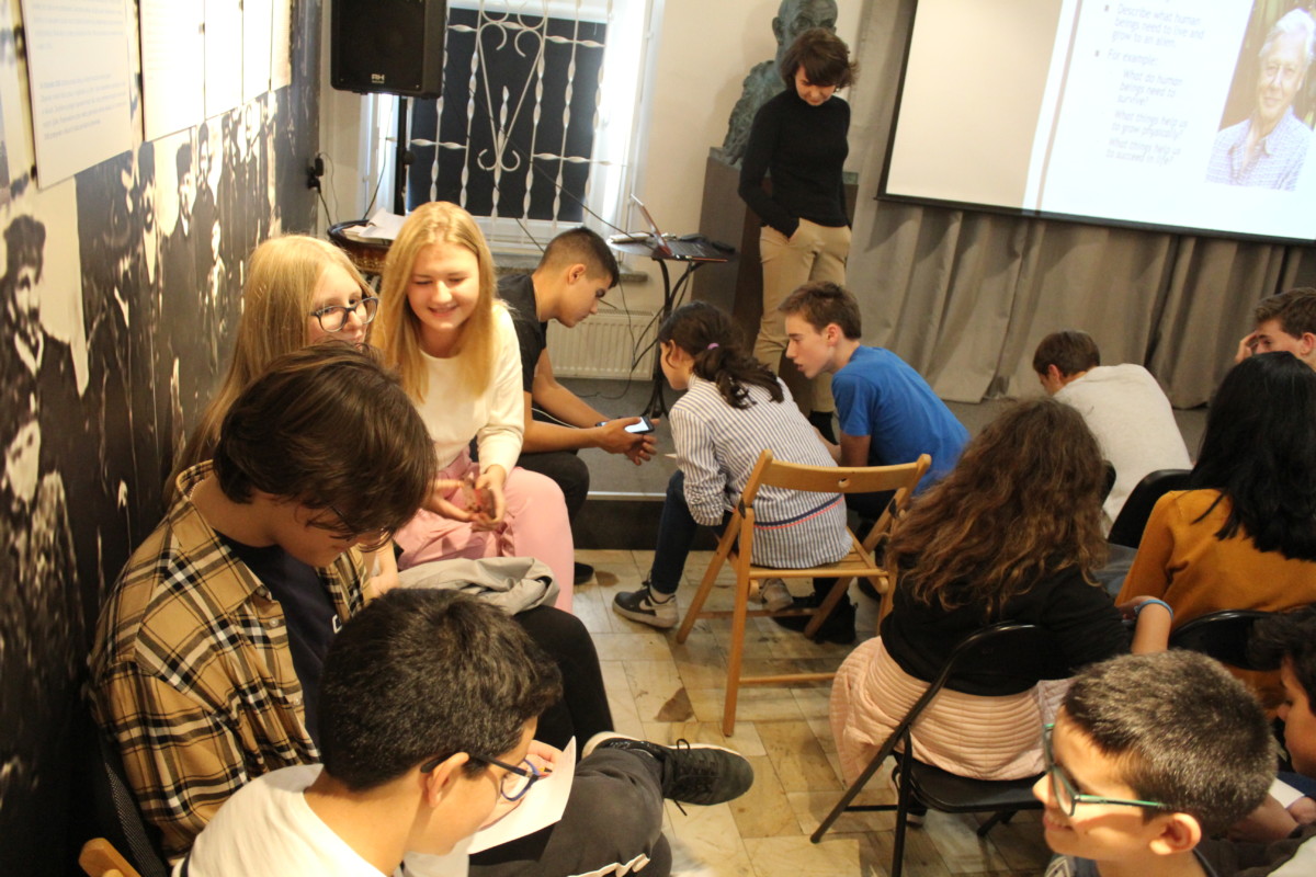 Dziś gościliśmy w Instytucie międzynarodowa grupę młodzieży, uczestniczącą w projekcie „Effect of the Life of Anne Frank on Social Inclusion Today”. Rolę gospodarzy pełnią uczniowie VII LO im. Józefa Piłsudskiego, goście zagraniczni to młodzież w wieku 13-15 lat pochodząca z Holandii, Belgii i Portugalii. W naszym Instytucie uczestnicy wzięli udział w warsztatach w języku angielskim, dotyczących praw człowieka, które poprowadziła Hanna Mijas, wiceprezes Stowarzyszenia.
