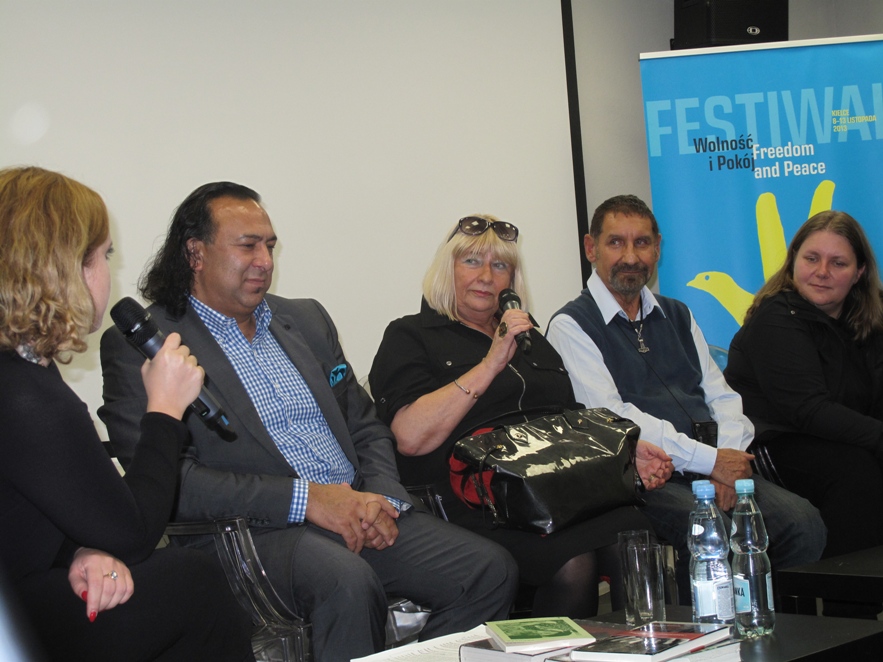 Od lewej: Małgorzata Kołaczek – sekretarz redakcji kwartalnika „Dialog-Pheniben”; Roman Kwiatkowski – prezes Stowarzyszenie Romów W Polsce; Elżbieta Ficowska, Sylwester Kwiek, Angelika Kuźniak, autorka książki Papusza