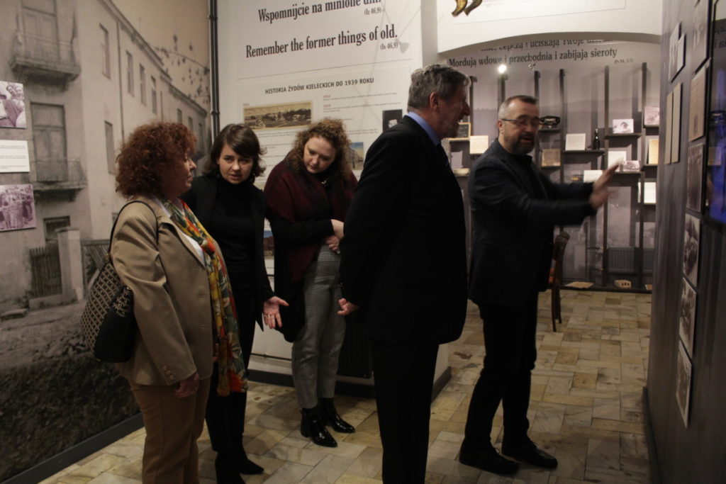 23 lutego w Instytucie Kultury Spotkania i Dialogu gościliśmy Aleksandra Ben Cewi, Ambasadora Izraela w Polsce oraz Irit Yakhnes, Attaché ds. Dyplomacji Publicznej. Bogdan Białek, Prezes Stowarzyszenia im. Jana Karskiego oprowadził gości po wystawach dotyczących pogromów w Kielcach oraz historii Żydów kieleckich.