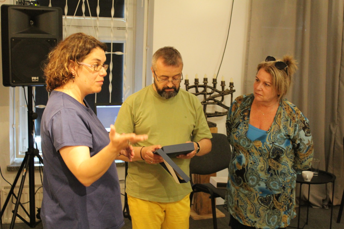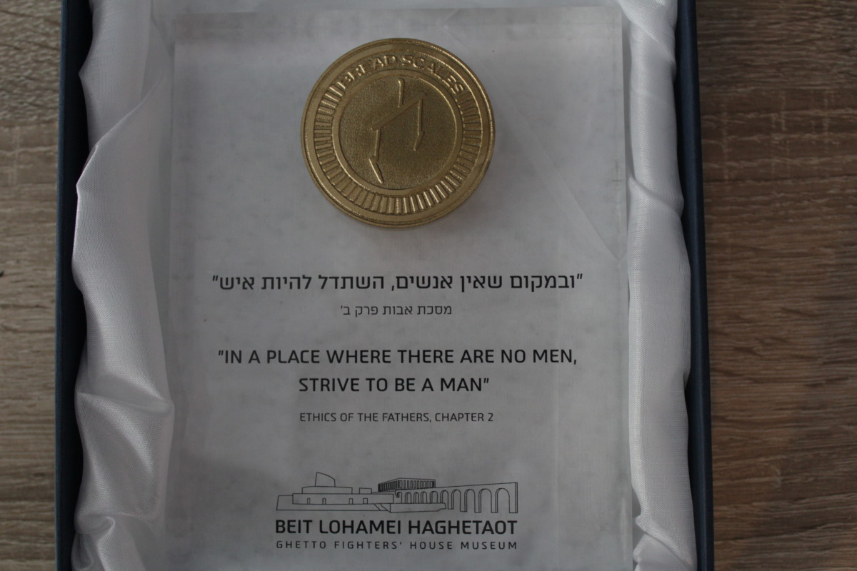 Wczoraj odwiedziła nasz Instytut grupa izraelska zorganizowana przez Muzeum Bojowników Getta (Ghetto Fighters’ House, בית לוחמי הגטאות), znajdujące się na terenie kibucu Lochame ha-Geta’ot, w Izraelu. Nasi goście obejrzeli film „Przy Planty 7/9”, zwiedzili stała wystawę i spotkali się z prezesem Stowarzyszenia Bogdanem Białkiem. W ramach podziękowania, wyrażając uznanie dla działalności Stowarzyszenia, organizatorzy wręczyli Bogdanowi Białkowi medal pamiątkowy Muzeum, przedstawiający przechowywaną tam wagę, którą zrobiły więźniarki obozu koncentracyjnego Blechhammer w Kędzierzynie-Koźlu by sprawiedliwie dzielić przydział chleba.