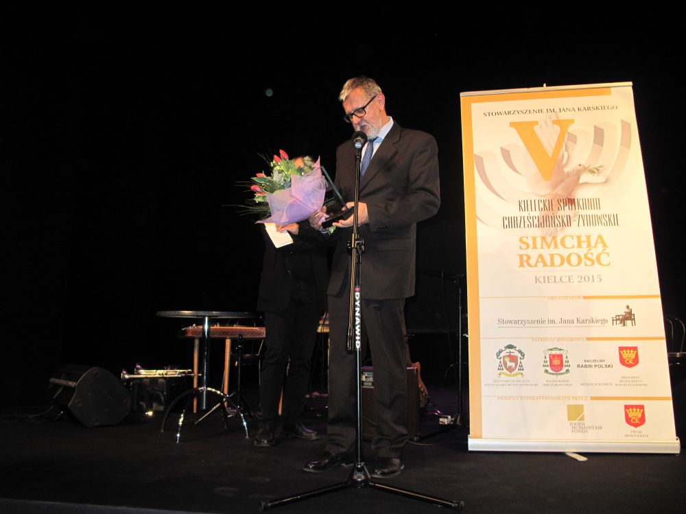 – Na Uniwersytecie Jana Kochanowskiego prowadził wykłady pod nazwą „Żydzi w regionie świętokrzyskim. Historia, kultura, społeczeństwo”, Jest znanym oraz cenionym popularyzatorem wiedzy o dziejach społeczności żydowskiej w Kielcach i regionie świętokrzyskim. Zarówno jako wieloletni dziennikarz „Echa Dnia”, w którym opracował cykl „Sylwetki naszych bohaterów”, ale także jako autor wielu publikacji i referatów. Tytuły niektórych z nich: „Dynastie chasydzkie w miasteczkach regionu świętokrzyskiego”, „Kielce we wspomnieniach rabina Moshe Nachuma Jerozolimskiego” – mówił Bogdan Białek, prezes Stowarzyszenia im. Jana Karskiego.