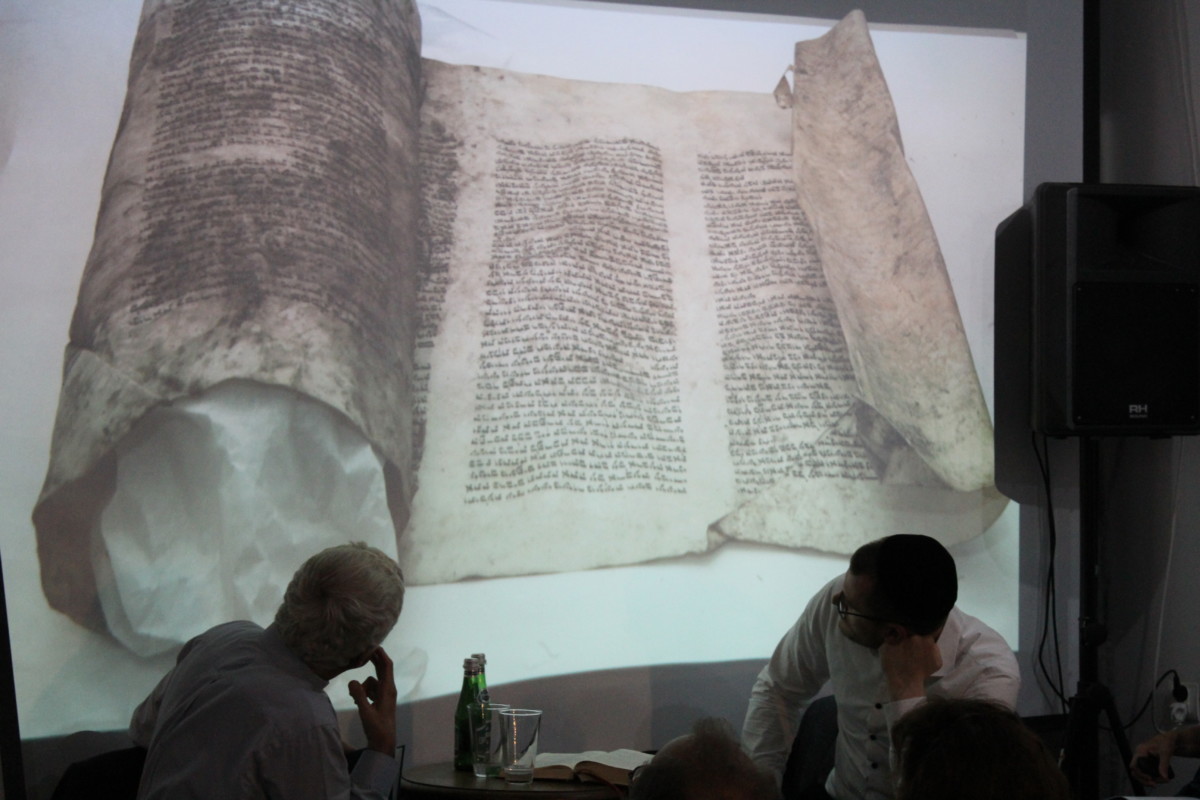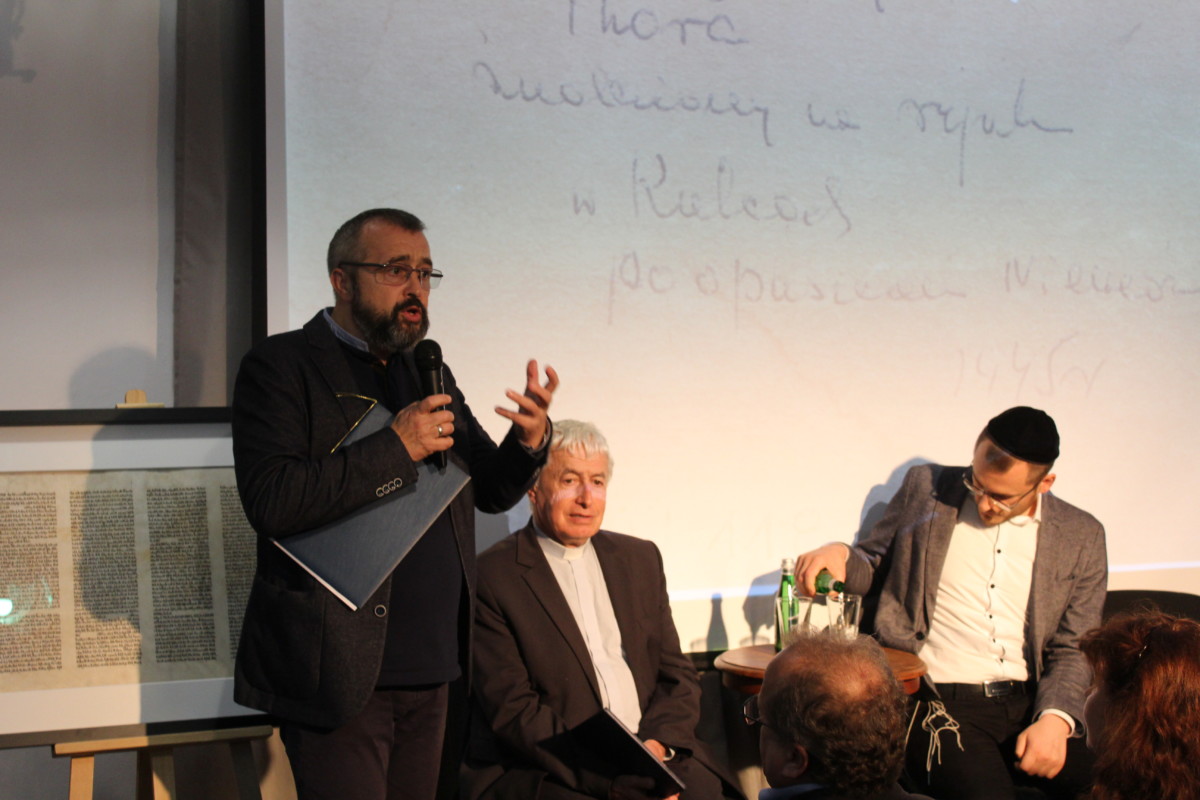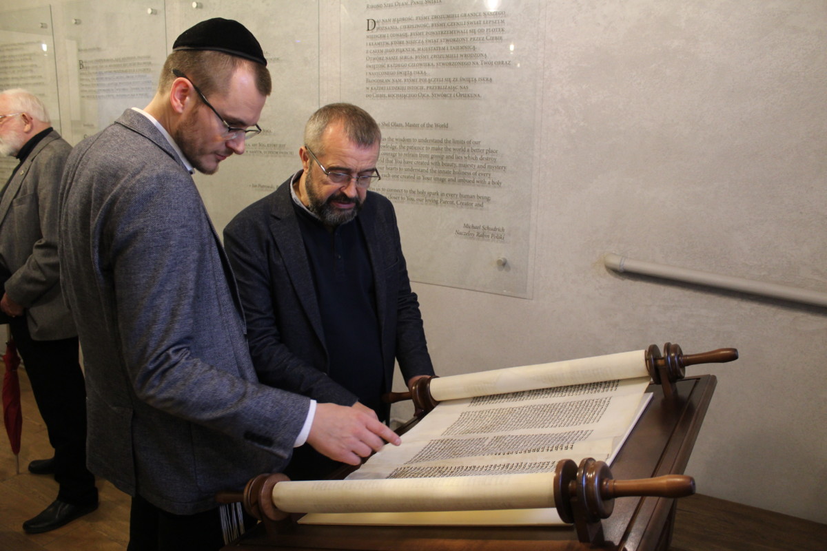 Szczególną okazją do kieleckiej celebracji była prezentacja odnowionej Tory, która odtąd będzie częścią ekspozycji w Instytucie. Zwój został znaleziony w 1945 w Kielcach przez prof. Piotra Bańkowskiego i prawdopodobnie pochodzi z tutejszej synagogi. Po śmierci profesora znalazł się on w archiwum Łomżyńskiego Towarzystwa Naukowego, gdzie, po latach, został odnaleziony przez współpracownika Stowarzyszenia im. Jana Karskiego. Po długim i mozolnym procesie renowacji dokonanym przez pracowników Muzeum Narodowego w Kielcach, Tora znalazła swoje miejsce w Pokoju Błogosławieństw w naszym Instytucie. O procesie renowacyjnym opowiedziała p. Alina Celichowska, która wraz z p. Izabellą Żołowicz pracowałą nad naszym rodałem prawie dwa lata.