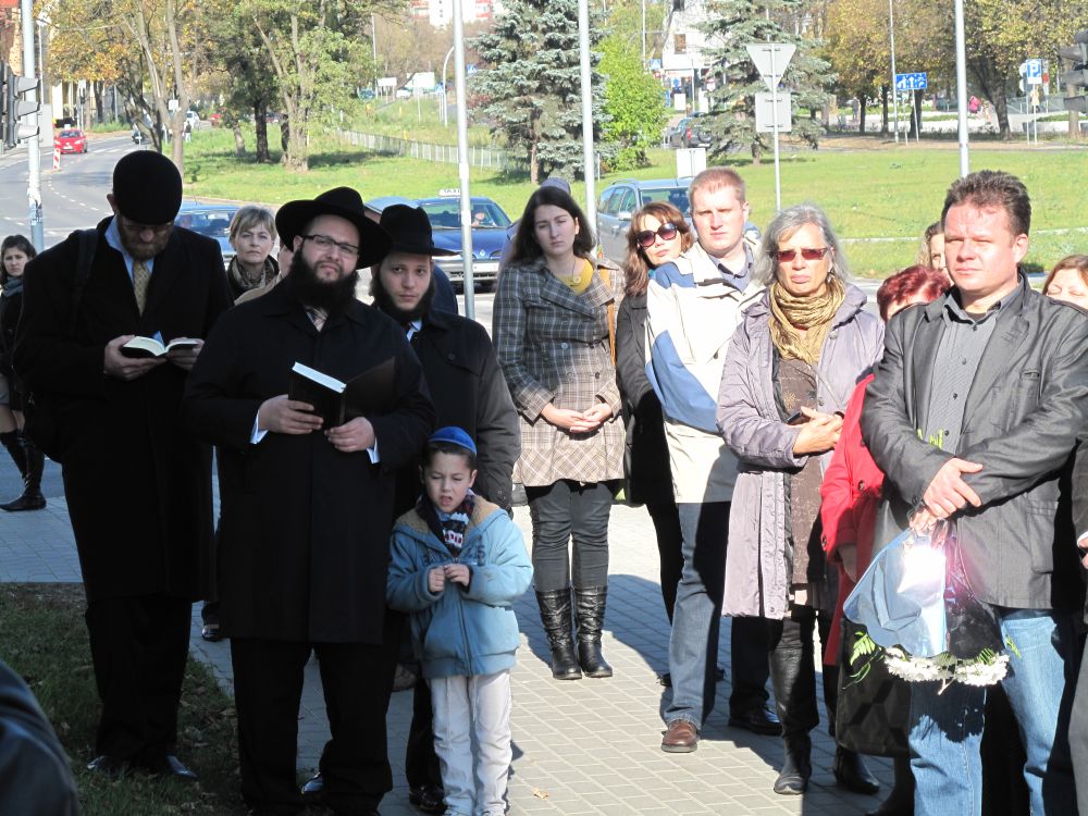 Następnie uczestnicy marszu udali się pod gmach dawnej synagogi, na którym odsłonięto tablicę poświęconą pamięci kilkudziesięciu ciężarnych kobiet rozstrzelanych nieopodal w trakcie zagłady getta.